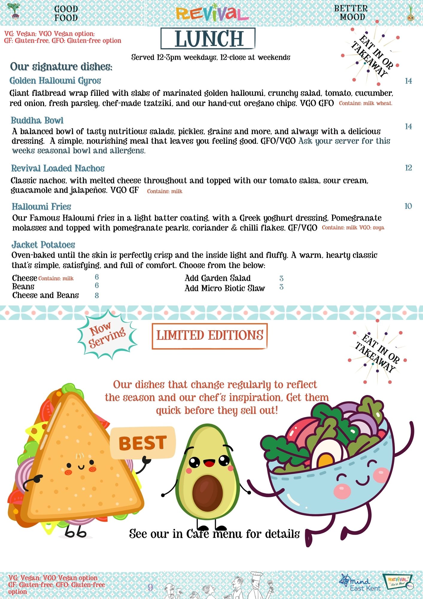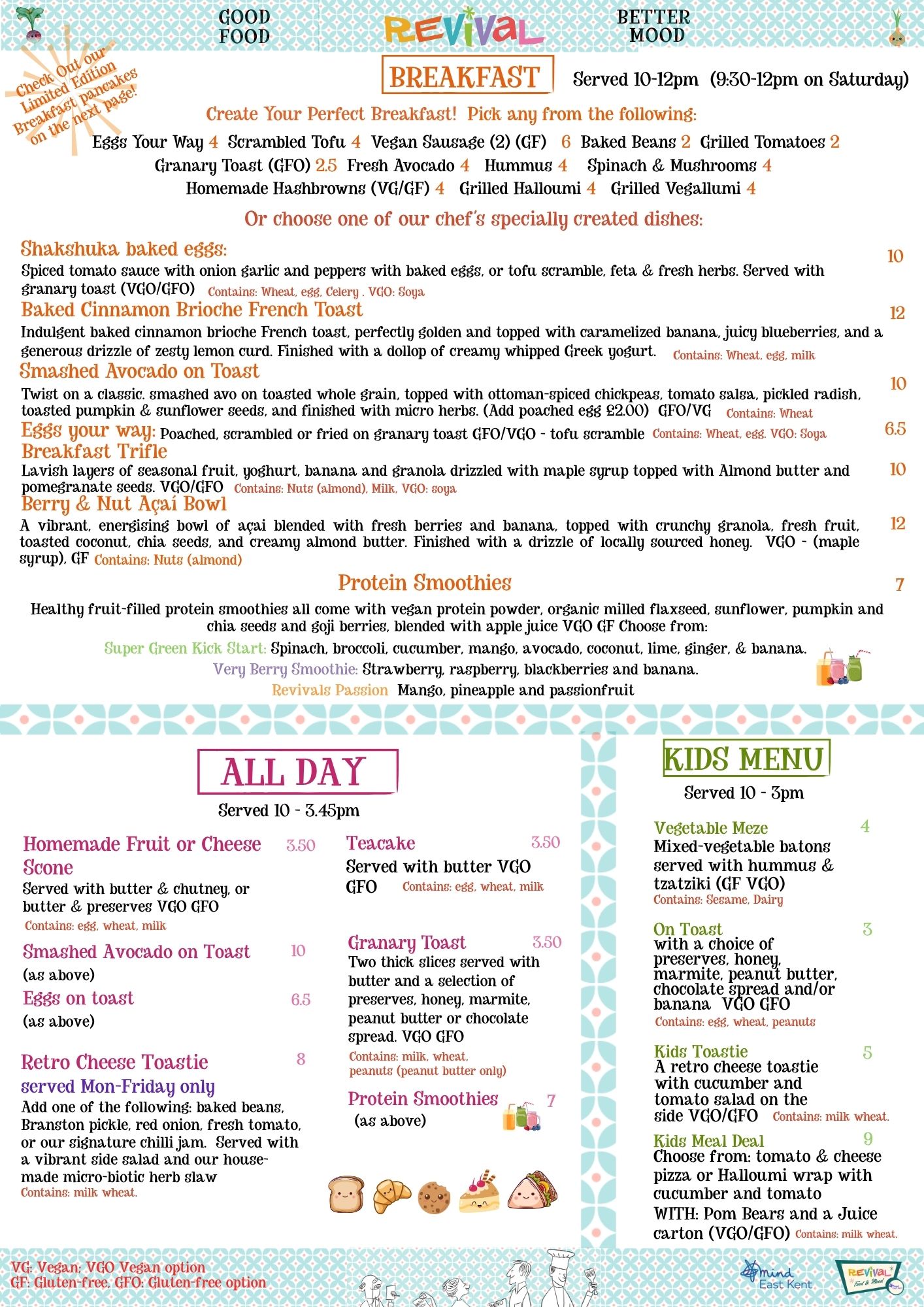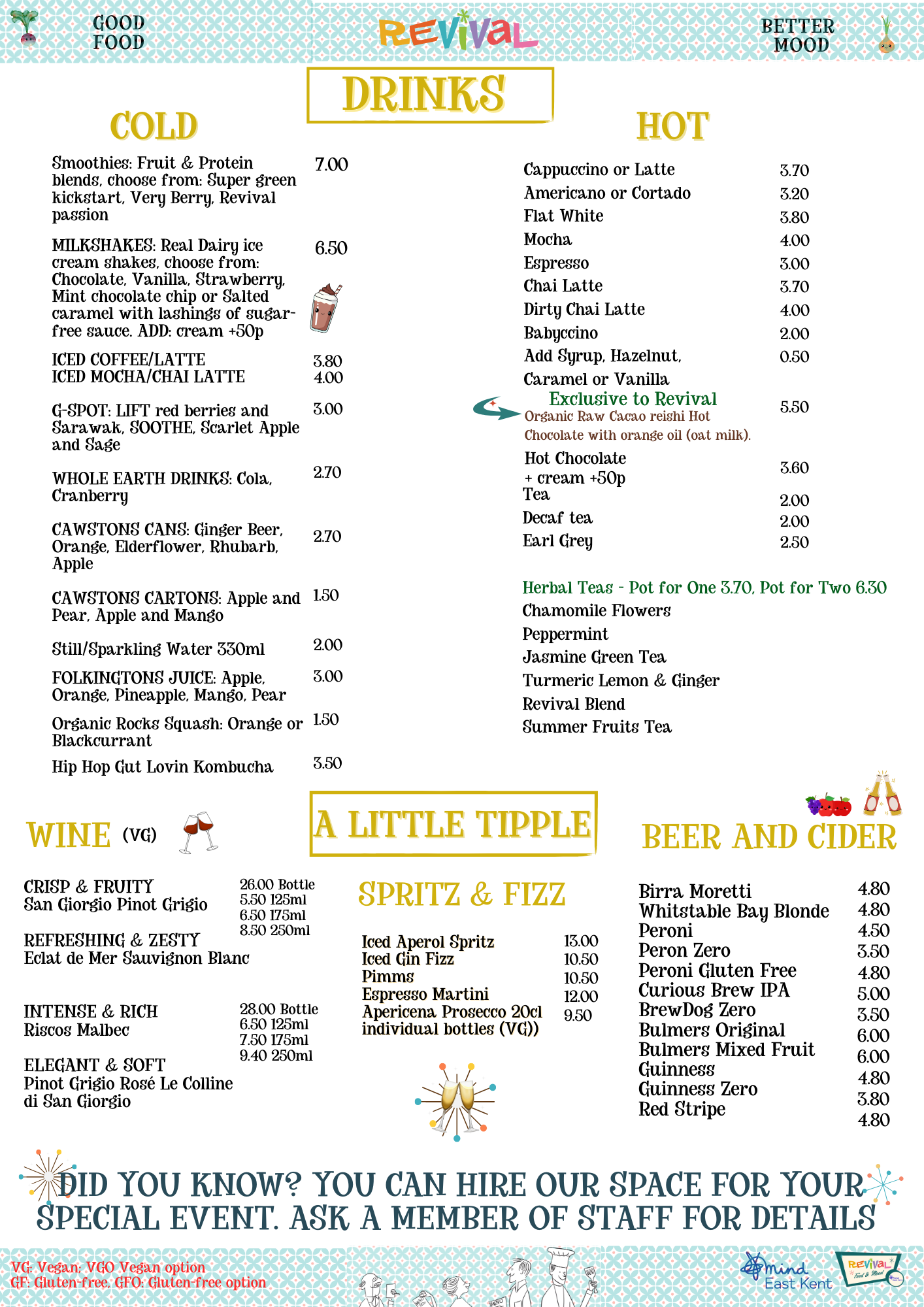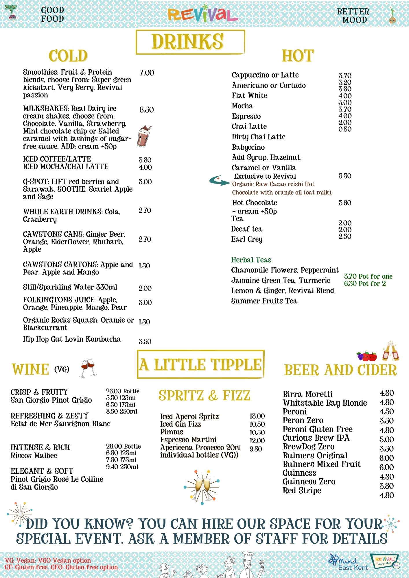 We pride ourselves on making our menus as accessible to as many dietary requirements as possible, if you have any questions, queries, requests or TO BOOK A TABLE please give us a call on 01227 266265 and we will do our best to cater for your needs.